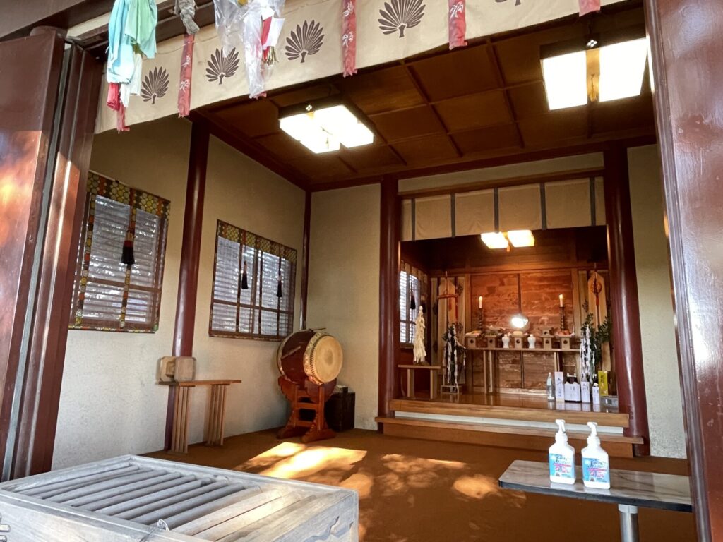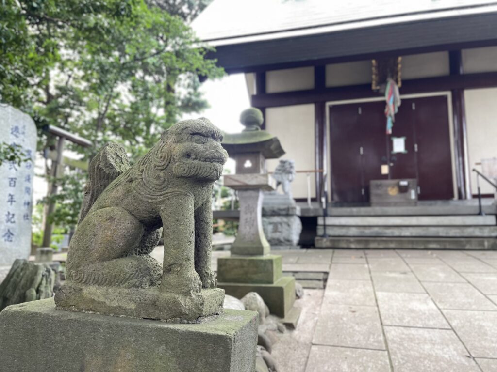 創建には平将門に仕えていた武士たちが関与し、約400年前に富士山を祀る神社から分霊して今のような神社になったという逸話があるそうです。事実、社内では千葉氏の九曜紋と富士山本宮浅間大社の棕櫚(シュロ)紋を見ることができます。