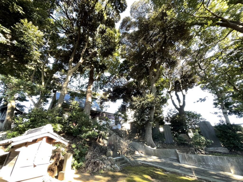 黒砂の台地の上、東京湾側の突端に位置し、昔は富士山を見ることができたそうです。