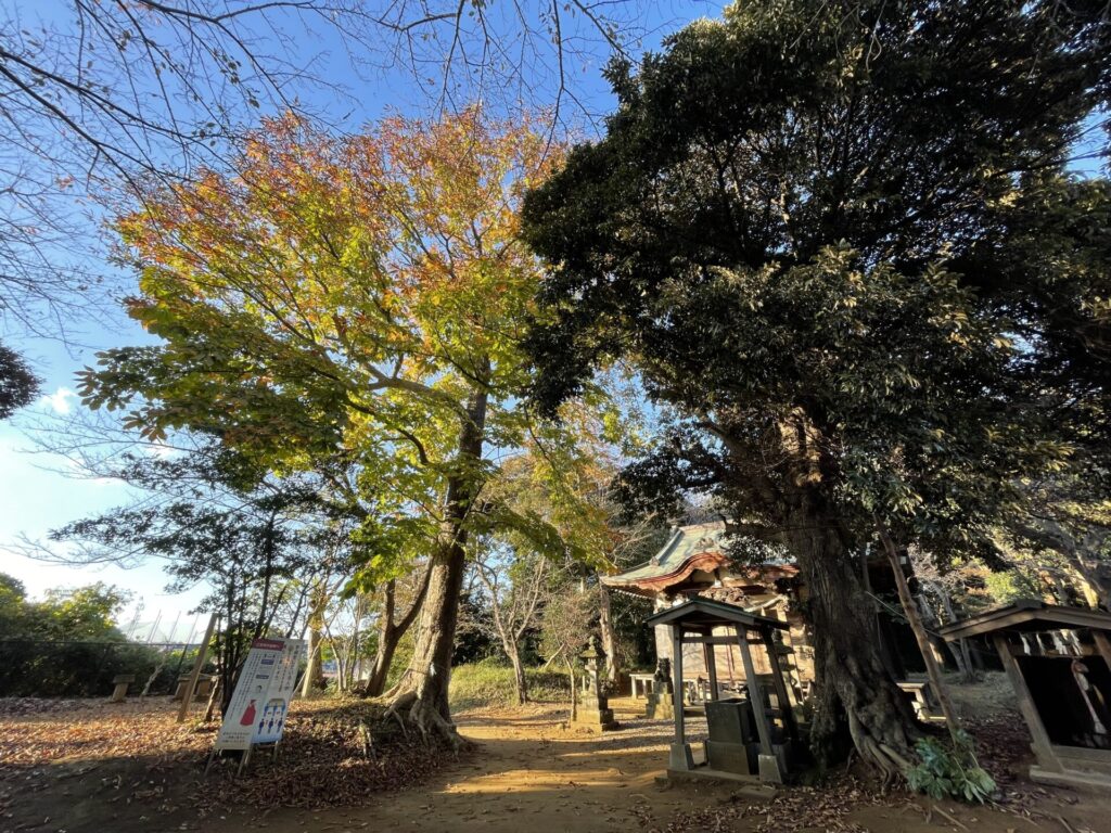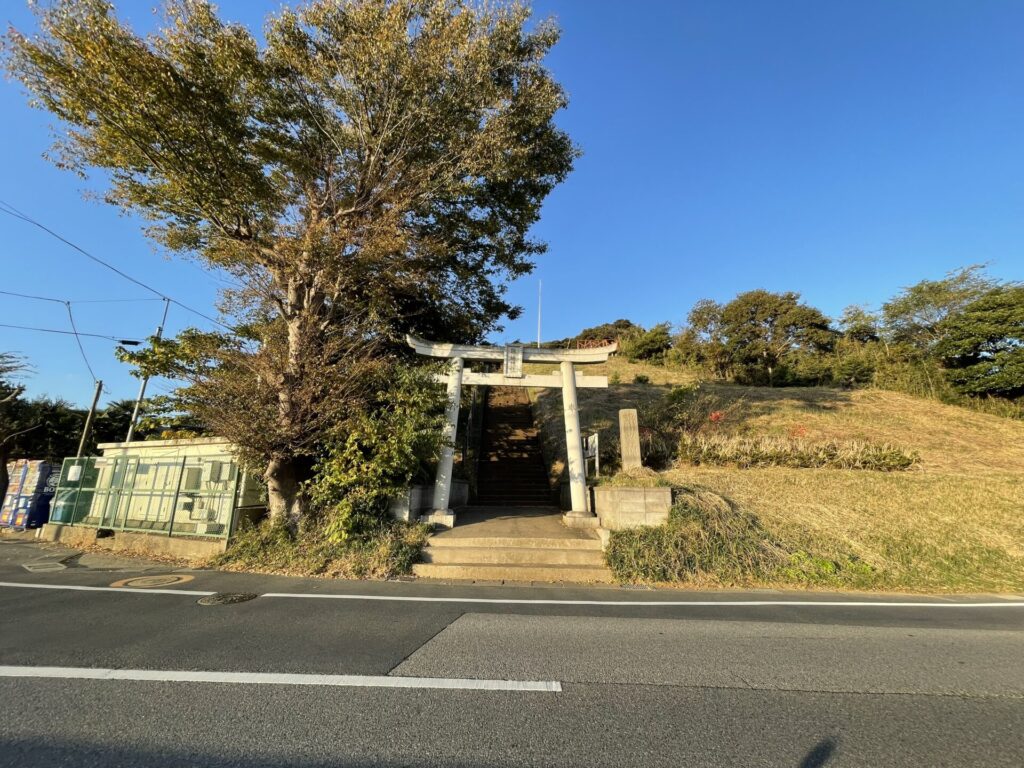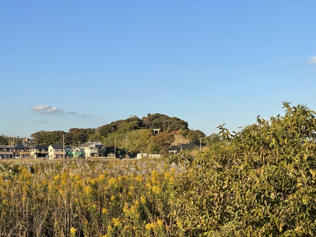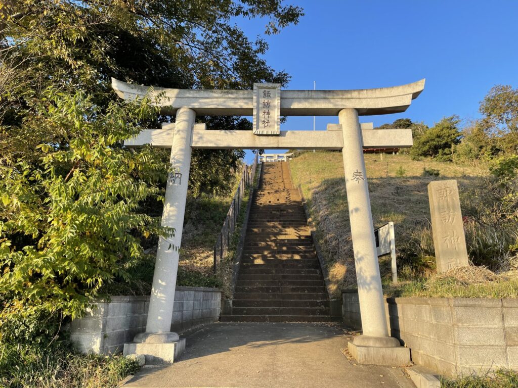 花見川沿いに広がる田んぼの脇、頂上に白い鳥居をたたえる小さな山が目をひきます。ここに鎮座しているのが諏訪神社です。