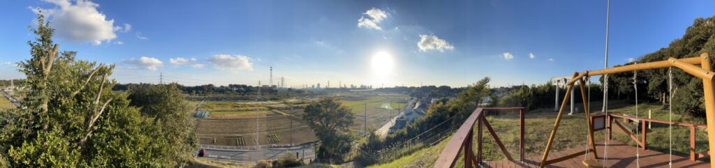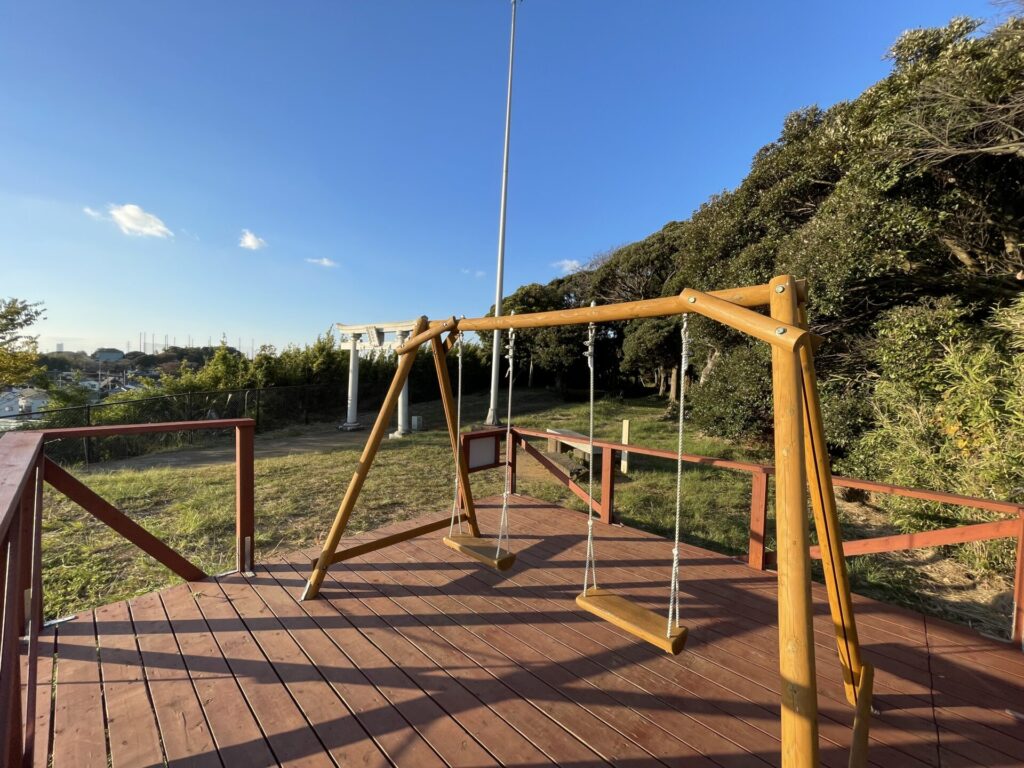 山の上のニ之鳥居の脇には、展望台とブランコが設置されています。大変見晴らしの良い眺望は、ご参拝のあとにとてもおすすめです。